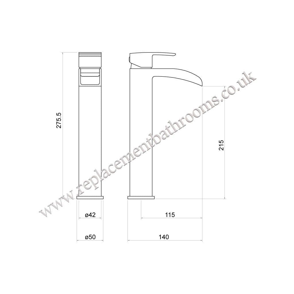 - 275.5 mm high. For use with countertop models of wash basin.