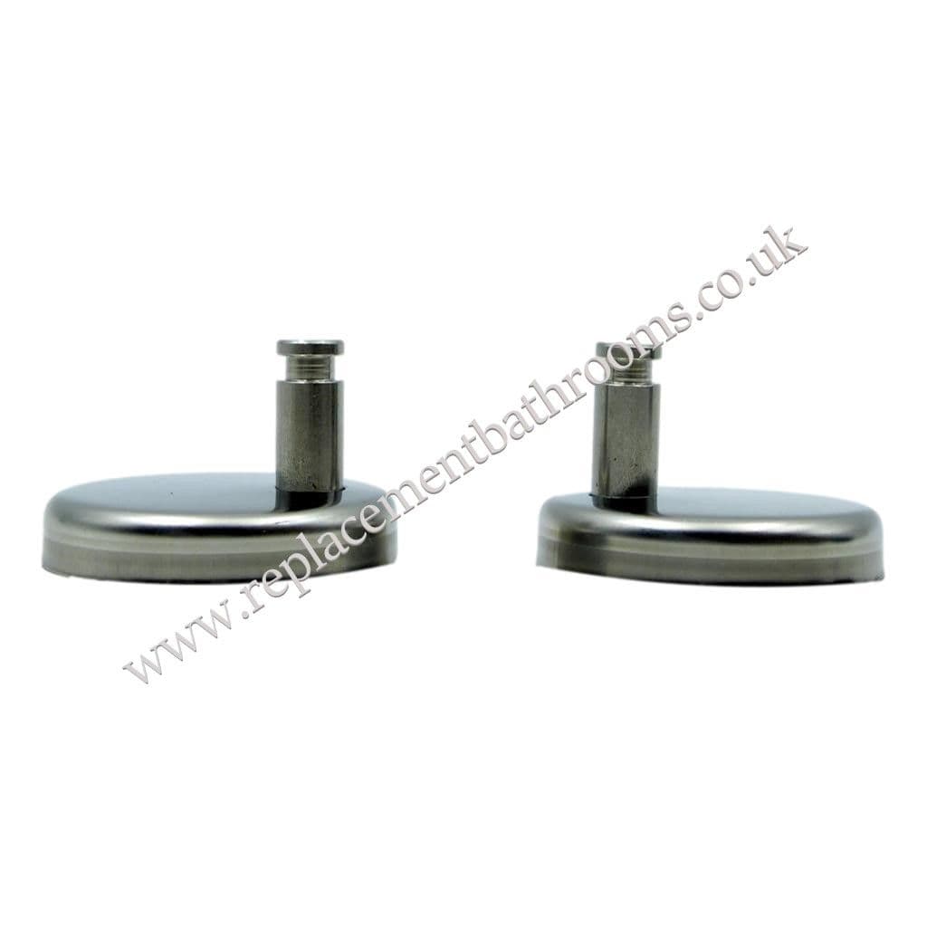 Pair of PRESSALIT universal toilet seat hinge mounting fixings for soft close seats with integral dampers fitted to seat,