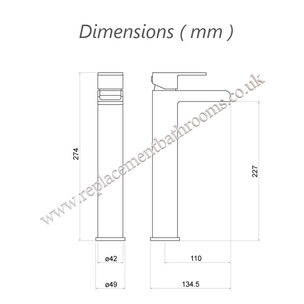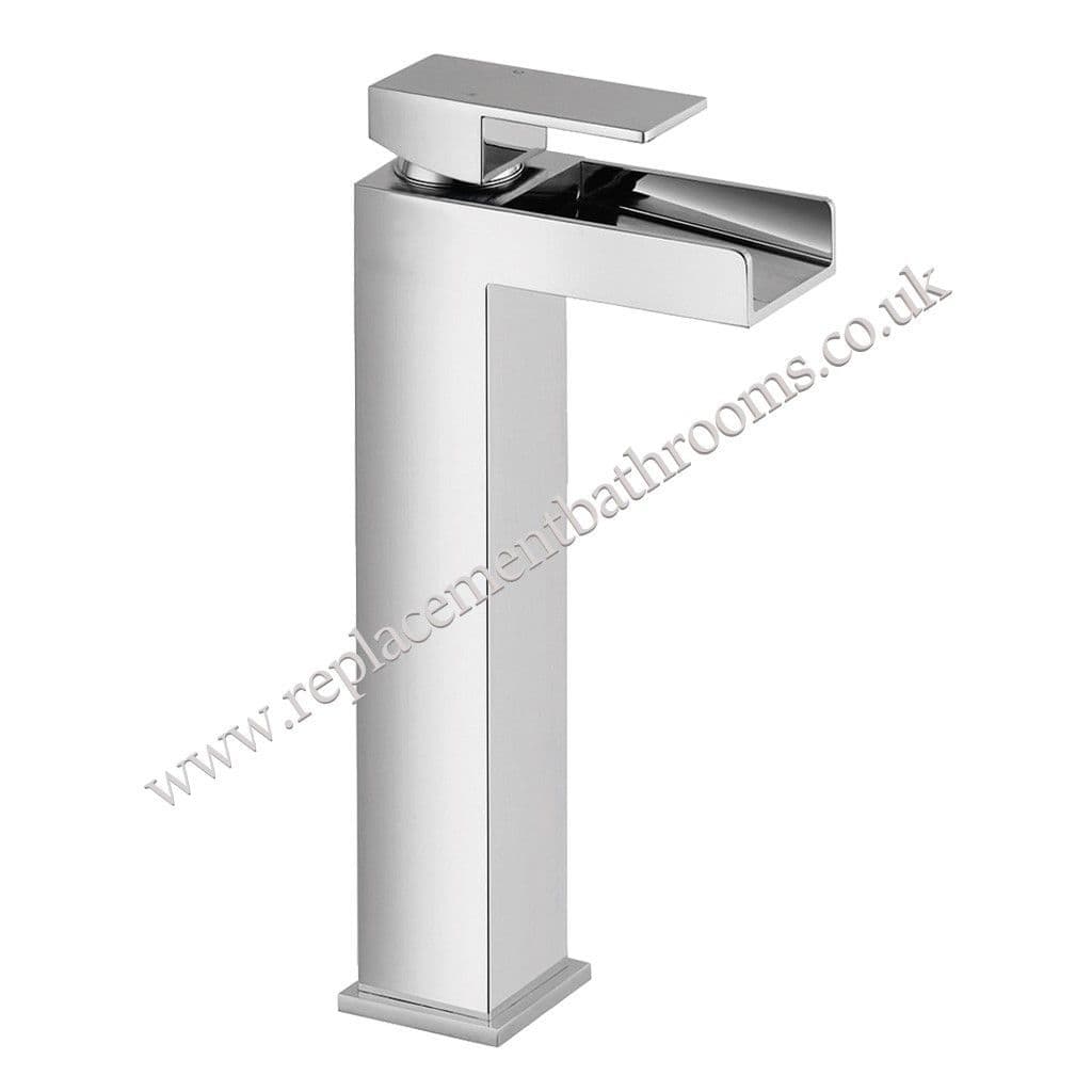 Single lever operated mono basin mixer. Modern square waterfall cascade design.