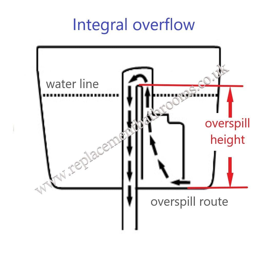 - For integral overflow facility determine overspill height required by measuring from base of cistern to the normal waterline and adding 25mm, ensuring that this measurement is a minimum of 10mm below any aperture in the cistern ( eg cistern lever hole, wall fixing holes or any other cut outs ).