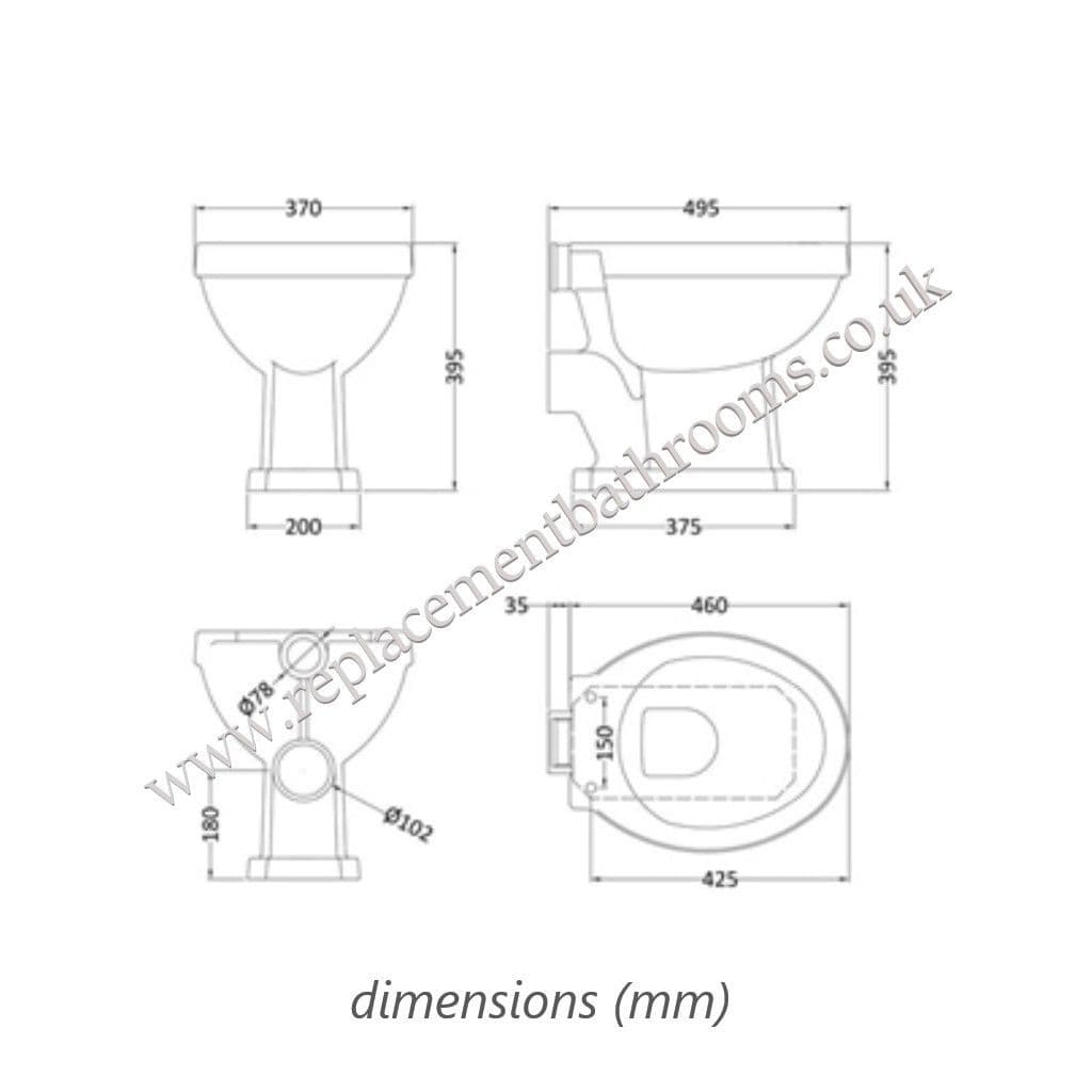 - Rim height 395mm, Overall projection 495mm ( from rear of soil outlet to front rim )