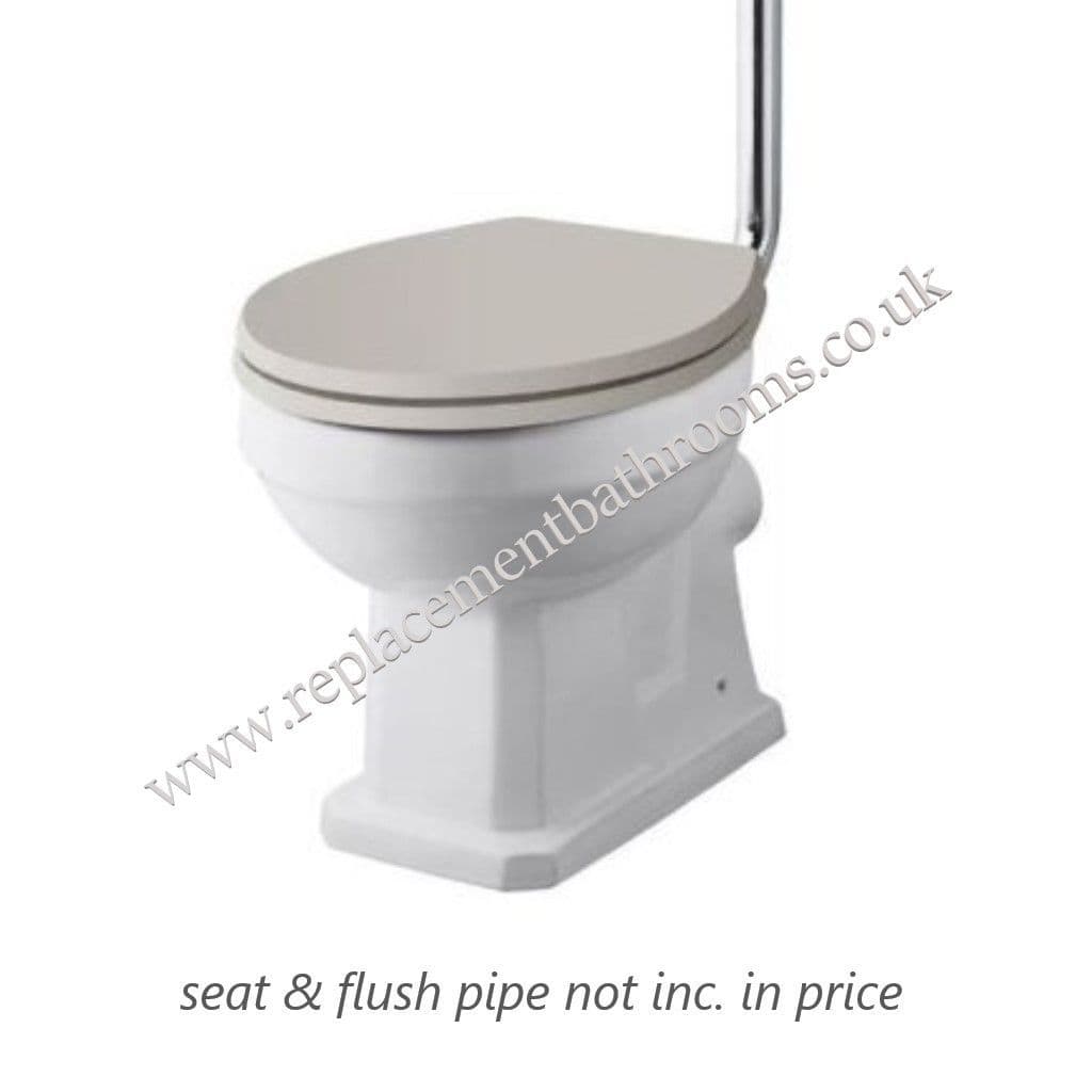 NEW, white vitreous china toilet pan with traditional Edwardian / Victorian styling. Provides stylish replacement for all basic design low level pans. Creates a period look to update tired installations.